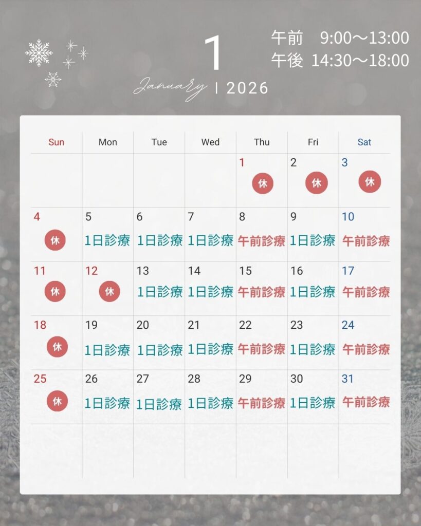 2026年1月 診療日のお知らせ
